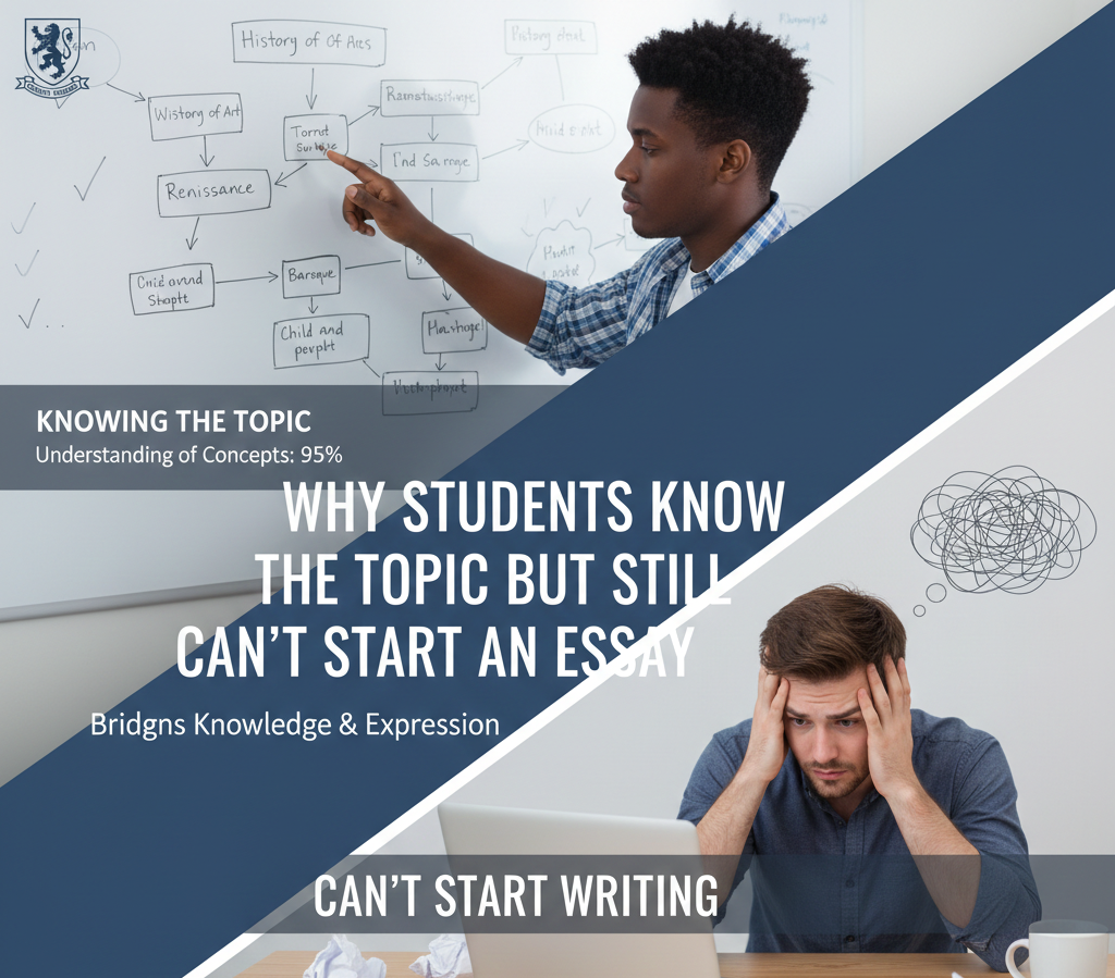 Even when students have done thorough research or know the topic, starting an essay can feel overwhelming. This phenomenon, often called writer’s block, arises because knowing information is different from organising it into a coherent academic argument.